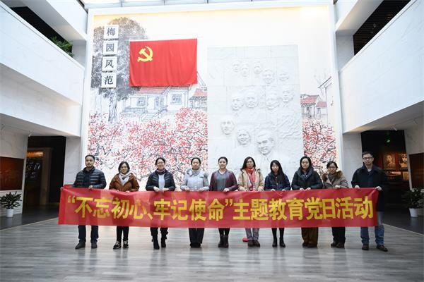 为深入学习贯彻党的十九大和十九届四中全会精神,深刻领会习近平新时代中国特色社会主义思想,进一步贯彻落实“不忘初心、牢记使命”主题教育精神,图书馆直属党支部全体党员在党支部书记、馆长沈逸君的带领下,于12月20日前往中国共产党代表团梅园新村纪念馆,开展革命传统教育及“进基地、寻初心”主题党日活动。