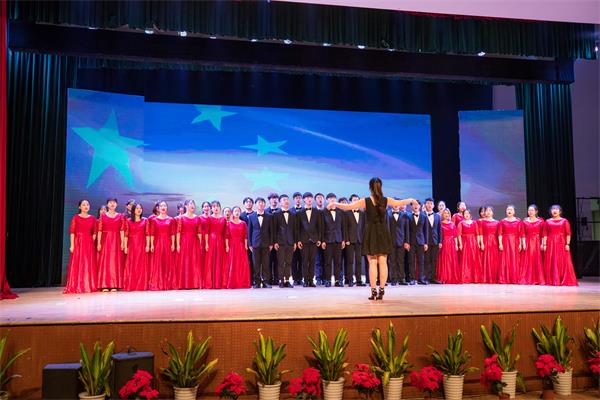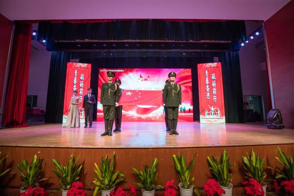 吴校长致辞后,典礼正式开始。在雄壮的大合唱《我和我的祖国》结束后,best365官网国旗护卫队进场,全体参会人员起立,面向国旗奏唱国歌。
