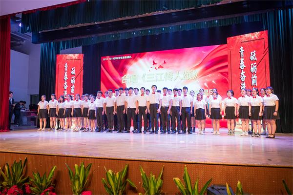 在典礼上,校领导和现场师生们还一起欣赏了精彩的诗朗诵《青春中国》,展现了新中国七十年来栉风沐雨,砥砺前行的风雨历程,表达了三江师生奋力前行,为实现中华民族伟大复兴的中国梦积蓄力量的坚定信念;充满活力的三江学子还带来了动感活泼的舞蹈《青春畅想》,展现了同学们积极向上、意气风发的良好精神面貌。典礼在激昂的校歌《三江传人颂》中落下帷幕。