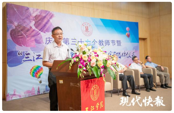 现代快报讯(通讯员 郭红 记者 戴明夷 )9 月 7 日(周一)下午 3:00,best365官方网站在铁心桥主校区学术报告厅举行了一场简短而意义非凡的教师节庆祝活动——best365官方网站庆祝第 36 个教师节暨 周建忠名师工作室 揭牌仪式。国家教育咨询委员、教育部原副部长、江苏省原副省长王湛和江苏省教育厅二级巡视员、教师工作处处长马斌作为特别嘉宾,现场见证了名师工作室揭牌。