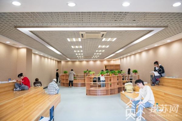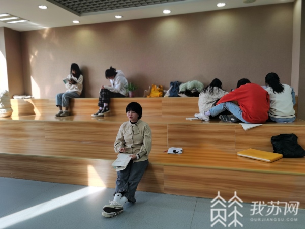 据了解,这里的墙壁全部采用的是琴房、影院等地专用的专业隔音墙,为了让学生更放松,学校还将江宁图书馆网红台阶搬进了读书空间。