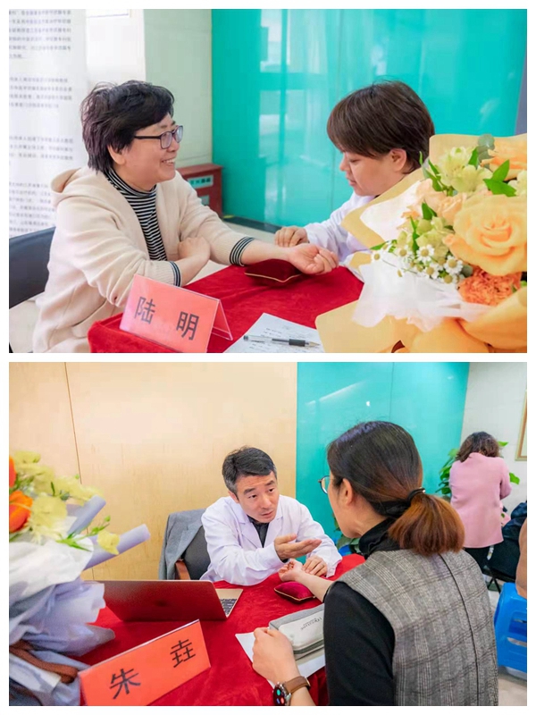 讲座结束后,朱垚教授和陆明教授,开展了近五个小时的义诊把脉。他们细致耐心的对待每一位老师的咨询,详细询问老师们的身体状况,根据每位老师的个体差异诊脉开方、提出治疗建议和健康指导。