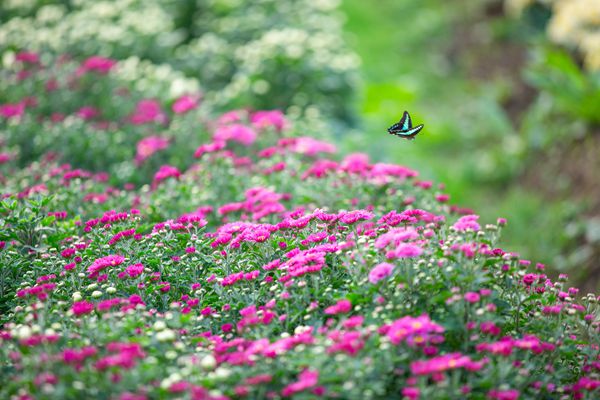 篱外菊花与斑斓蝴蝶的翩跹之约
