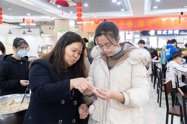 活动中,为同学们准备了充足的面片和多种馅料,指导老师手把手教授同学们搅拌馅、包饺子、煮饺子的技巧。大家也是八仙过海,各显神通,纷纷拿出自己的看家本领。在同学们的不断尝试中,一个个“奇形怪状”的饺子纷纷崭露头角,有长的、有方的、有扁的、有圆的,活动氛围浓厚,秩序井然。最后,一盘盘热气腾腾的饺子上桌,大家吃在嘴里,暖在心里,让冬至的寒冷在这一刻烟消云散,到处洋溢着“家”的味道、“家”的温馨。