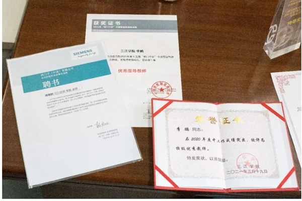 季鹏老师骄傲地指着墙上正中挂着的多张“西门子杯”获奖证书,“从19年至今连续进入‘西门子杯’国家总决赛,特等奖、一等奖都有荣获,这是民办类院校中独一份的荣誉。”带竞赛的过程很累,与学生们在学校里一起熬夜是难免,但是和学生们一起不断进行头脑风暴的过程更让季鹏老师感到快乐。