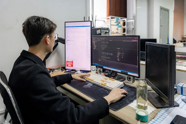 从进入优创实验室的第一天起,他就深深地喜欢上了这里的环境,和团队小伙伴们一起把自己的作品搭建好是一件特别让人自豪的事情,不管什么比赛,他都会主动报名参加,积累经验、开拓眼界。他每天除了吃饭休息,课余时间几乎都用在了这里。
