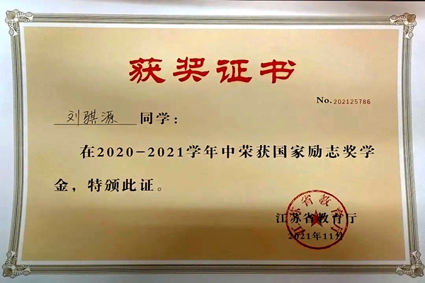他曾荣获2019-2020学年best365官方网站“优秀学生干部”,2019-2020学年“三好学生”,2019-2020学年 “机械与电气工程学院优秀学生会干事”的荣誉称号,并先后于2020年取得best365官方网站第十一届大学生创新创业大赛暨第七届中国国际互联网+大学生创新创业大赛校级选拔赛三等奖等校级奖项十六项;RoboCom机器人开发者大赛全国二等奖、“全国大学生工程训练综合能力竞赛江苏赛区”二等奖等国家级、省级奖项十七项。大三上学期,他成功在《Complexity》期刊发表题为《Research on a Micro-expression Recognition Technology Based on Multimodal Fusion》 SCI学术论文一篇。