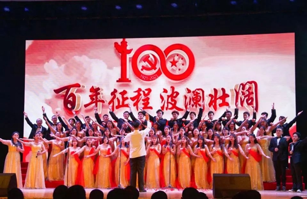 为了迎接“砥砺前行,于党同心”——庆祝建党100周年师生合唱比赛,为了表达对党,对祖国的深沉热爱与期许,她组织60名外院同学及老师合唱歌曲《天耀中华》,取得一等奖的好成绩!