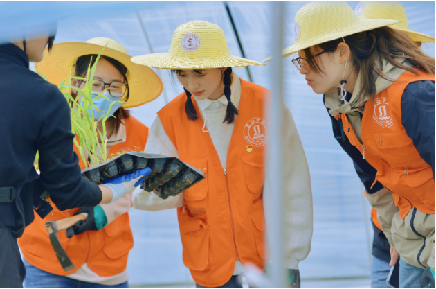 活动现场,生态农场的农艺师首先向学生党员们介绍了玉米的生长环境和需求及玉米的种植方法,展示了玉米幼苗的栽培过程,强调了栽培深度和间距的重要性,党员们聚精会神地听着。