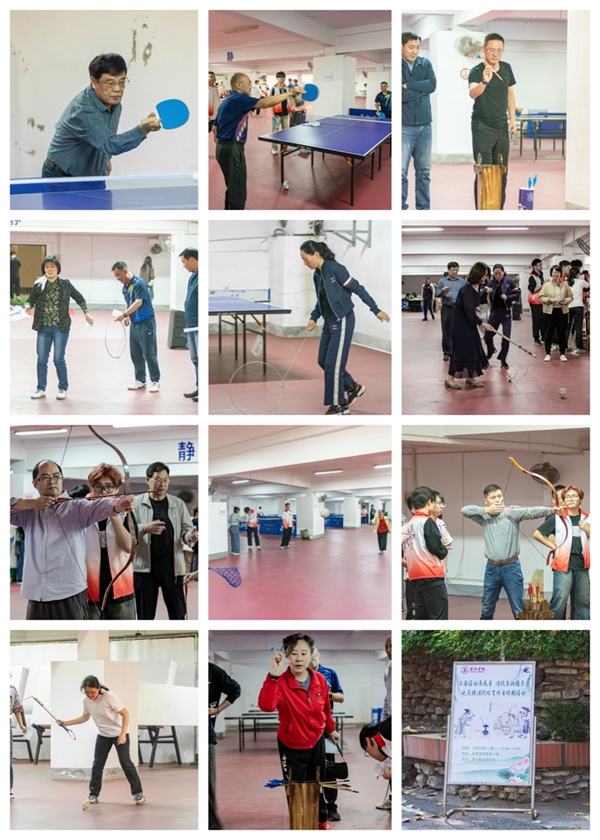 本次活动共设置了八项民族传统体育运动项目,包括抽陀螺、滚铁环、踢毽子、投壶、珍珠球、砂板乒乓球、射箭、板鞋竞速。老师们在活动中进行逐项打卡体验,充分展示自己的风采,享受运动的快乐,感受团队协作的力量。通过此次活动,大家在紧张的工作之余,放松了身心,增进了友谊,提高了团队凝聚力,同时也加深了对民族传统文化的了解。