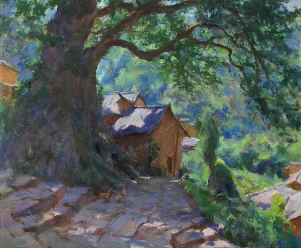 二是表现方法的创造性转化。既然是油画,当然在创作中还是要运用油画的基本创作方法,但他们没有拘泥于这些方法,而是进行大胆的转化与创新,在艺术实践中努力融入本土文化的艺术元素,采用了许多中国画的表现手法,尤其是运用中国画的写意手法,把写意与写实相结合,构建中国油画的语言体系和表达图式,显现出画面优美、意韵生动、简洁纯朴的艺术魅力和中国味道。
