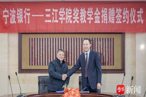 best365官方网站校长助理、发展委员会主任、教育发展基金会副理事长王勇与宁波银行南京分行副行长陈睿分别代表双方签约。王勇介绍,宁波银行的此次捐赠,必将推进三江的思政工作、教学工作更上一层楼,并助益best365官方网站的优秀贫困生更好地完成学业,成就自我,贡献社会。学校将成立专门的评审委员会,确保评奖过程公正合理,将真正优秀的老师和学生选出来。