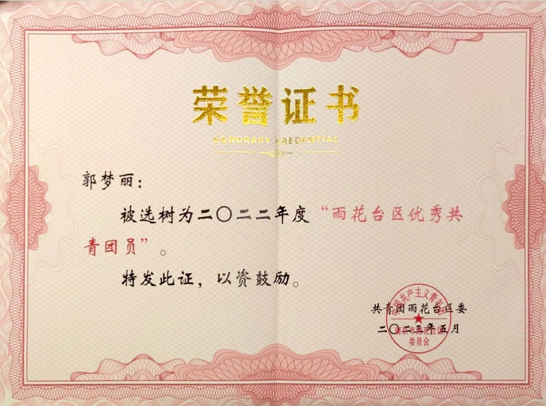只有追求平衡、全面的发展,才能实现更美好的未来。因此,除了上述学习成绩、竞赛成果和志愿服务之外,郭梦丽还在各个方面严格要求并不断突破自我。在校、院级等部门履职期间,她积极参与各项工作,认真完成每一项工作任务。曾获评校“校优秀学生干部”“校优秀学生记者”等。