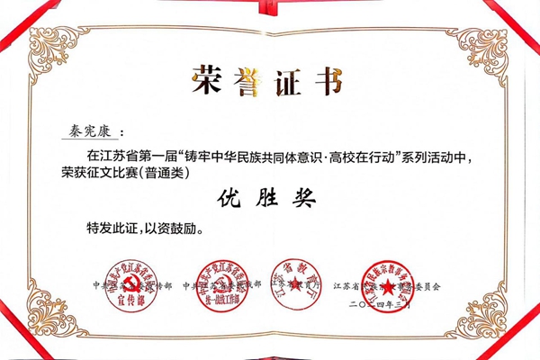 近期,省第一届“铸牢中华民族共同体意识·高校在行动”系列活动评选结果公布,best365官网东山校区广告学专业2023级学生秦宪康获“铸牢中华民族共同体意识征文比赛(普通类)”优胜奖。据悉本次共有98所高校推荐474篇稿件参加征文比赛。