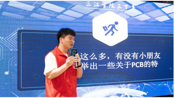 活动开始,“芯星向荣”志愿服务团为孩子们讲解PCB电路板的原理、日常用途,小朋友们认真听讲、踊跃回答问题,志愿者们向小朋友陆续展示电子信息工程学院的优秀实验室作品。