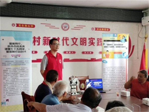 在“科普小课堂”中,志愿者向村民展示了学院实验室的作品,并向他们介绍了科技产品的制作流程和功能效果,村民们看见实验室创新的成果都纷纷称赞,掌声不断。随后,志愿者们又向村民们介绍了智能电子家居和部分智能家居装置过程。“三下乡”宣讲员的一句“科技走进千万家,宛若明灯照亮你我他,便捷生活主要靠创新。”引起了村民们的广泛认同。通过这次深入的介绍和宣讲,村民们对科技创新有了更深层次的认知,同时也更深刻的意识到科技创新便民利民,不仅仅有利于国家发展,也有利于人民生活的便捷。