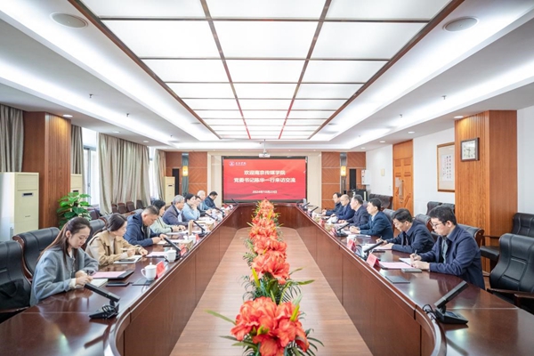 10月23日,南京传媒学院党委书记陈华、党委副书记王宇甜、副校长黄秀琴等一行九人来访best365官网,理事长、党委书记封超年,党委常务副书记、副校长周更生,党委办公室(党委组织部、党委统战部)、学生发展与服务中心、后勤处、保卫处等部门有关负责人在行政楼A404会议室接待了来访客人。