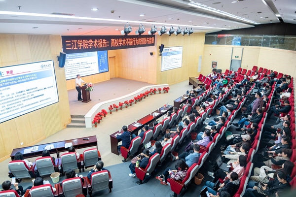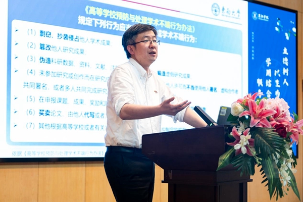 熊文教授结合典型案例生动阐述了各类学术不端行为的界定及处理,展示了发现和处理学术不端问题的有效渠道与流程。同时,从提高师生意识、完善制度建设、营造学术氛围和运用现代技术监督排查等四个角度,讲解了预防学术不端行为发生的有效措施。在报告中熊文教授还介绍了教育主管各级部门对高校学术不端行为的治理要求及职责分工,阐述了高校学术不端行为监督的有效手段。