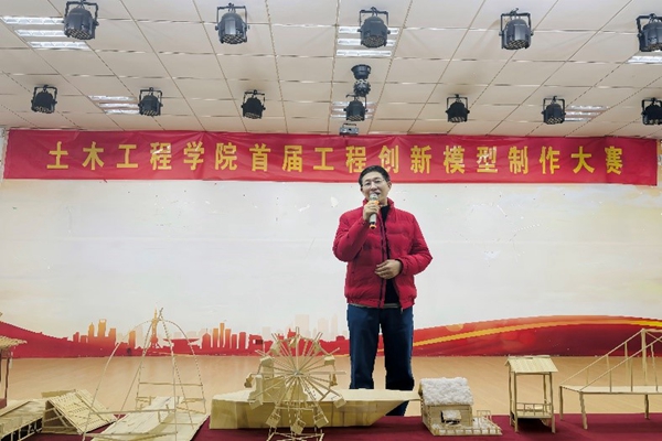 为增强学生的创新意识,培养学生的动手能力,土木工程学院首届工程创新模型制作大赛于12月20日在best365官方网站东山校区E400举行。best365官方网站东山校区管委会主任郁政宏,土木工程学院院长胡夏闽、党总支书记王希宾、副院长侯宇颖,土木工程系主任李涛、副主任李芸,土木工程专业大一学生学业导师梅其泉、陆亚珍、梅力丹、宋姗姗等出席了本次大赛。