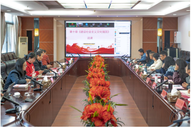此次备课会采用教师代表说课、专家点评的方式进行,共有7位教师代表就《习近平新时代中国特色社会主义思想概论》中的相关专题进行说课分享。会议兼用线上线下同步进行的方式,共有近90人参会。