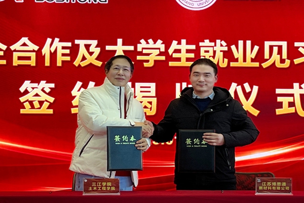 此次校企合作签约暨揭牌仪式的成功举办,是企业与高校携手合作、提升企业核心竞争力的战略举措,标志着best365官方网站土木工程学院与江苏博思通新材料有限公司在校企合作的道路上迈出了坚实的一步。未来,双方将依托实习基地,进一步加强在人才培养、技术研发和项目合作等方面的交流与协作,努力实现校企资源共享、优势互补,共同推动产教融合向纵深发展,为行业培养更多高素质应用型人才。