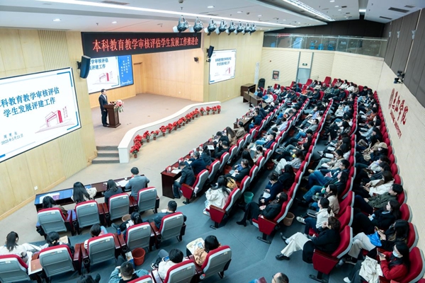 会上,周更生对本科教育教学审核评估学生发展评建工作进行了深入解读,他从三个关键问题出发:“用什么样的尺子?”“谁来量?怎么量?”“我们需要做什么?”,详细解读了本科教育教学审核评估指标体系和学生发展相关的评估指标的内涵、新一轮审核评估的评估方法和主要环节、学生发展相关指标所对应的评建任务。周更生指出,要深入理解把握新一轮审核评估的标尺,领会本科教育教学审核评估指标体系的内涵和要求,提升评建工作的实效性和达成度。其次,要立足立德树人高度,坚持以服务学生发展为核心,强化学风建设,抓好过程管理,把功夫下在平时,常态化做好学生发展方面的自评自建工作,实现日常工作和评建工作两促进、两不误。最后,他指出,要强化结果导向,提升工作效度和成果显示度,抓评建、补短板、强特色、促成果,全面扎实完成教育主线评建各项目标任务,为学校顺利完成本科教育教学审核评估做出应有贡献。