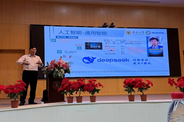 曹教授从智能的各种概念和内涵出发,阐述了人工智能的分类,以及通用智能的代表-大模型。当前AI大模型已经成为全球各国技术竞争的高地。以DeepSeek为代表的国产生成式人工智能,为我国AI领域带来了一场振奋人心的突破。这一成果不仅标志着我国AI大模型首次与国际顶尖水平并驾齐驱,更折射出我国AI产业从“技术跟跑”到“技术并跑”的跨越式发展。DeepSeek大模型不仅在文本生成、逻辑推理、自然语言交互方面表现出了明显优势,而且向多模态内容生成和多代理执行任务方向快速迭代,形成了新的知识生产和问题解决范式。
