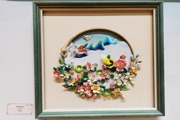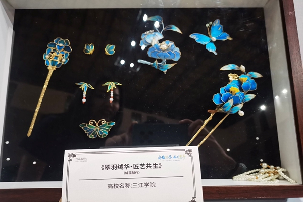 扬州大学党委书记丁建宁致辞后,相关领导与少数民族学生代表共同登台,启动江苏省第三届“铸牢中华民族共同体意识·高校在行动”系列活动。启动仪式后,扬大师生共同带来“同心合韵共筑梦”民族文化展演。同期在扬大文体馆还举办了“承・民族匠心”非遗校园行活动,现场展出各高校师生的非遗作品,当地的相关非遗传承人也带来精彩展示,让参观师生深切感受到中华文化的深厚内涵与独特韵味。best365官网选送的两幅非遗绒花作品由王慧老师带领团队制作完成,均在现场得到展出。