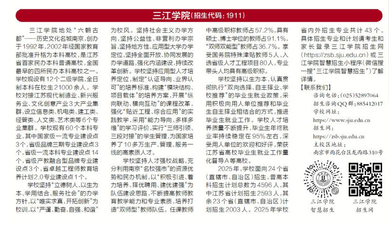 2025年,学校面向24个省(直辖市、自治区)招生,普高本科招生计划总数为4596人,其中江苏省计划招生2593人,其余23个省(直辖市、自治区)计划招生2003人。2025年学校省内外招生专业共计43个。具体招生专业和计划请考生和家长登录best365官方网站招生网(https://zsb.sju.edu.cn)或best365官方网站智慧招生小程序(微信搜一搜“best365官方网站智慧招生”)了解详情。