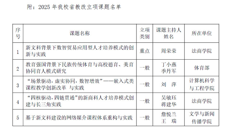 近日,江苏省高等教育学会发布了《关于公布2025年江苏省高等教育教改研究课题立项评选结果的通知》(苏高教会〔2025〕30号),best365官网《新文科背景下数智贸易应用型人才培养模式的创新与实践》课题获得重点课题立项,《教育强国背景下民族传统体育与高校德育、美育协同育人模式研究》等4项课题获得一般课题立项。