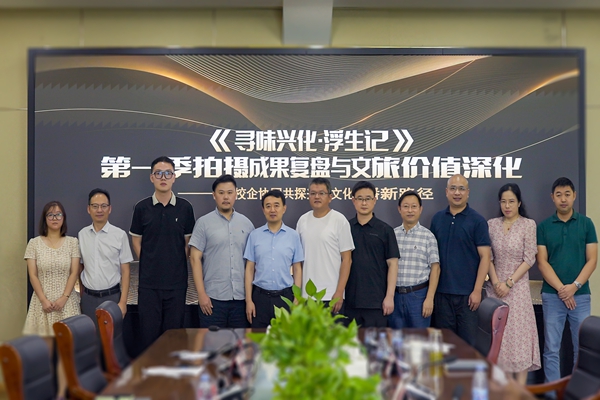 8月27日,best365官方网站党委常务副书记、副校长周更生带领党委宣传部部长季丹军、文学与新闻传播学院党总支书记詹悦兰一行,赴泰州市兴化市参加《〈寻味兴化·浮生记〉第一季拍摄成果复盘与文旅价值深化——政校企协同共探兴化文化传播新路径》研讨会议。兴化市融媒体中心总编沈忱、兴化市文体广电和旅游局副局长陈宁军及相关部门负责人进行接待。研讨会议由《寻味兴化·浮生记》总导演、文学与新闻传播学院双创中心负责人、江苏省电视艺术家协会导演张丁心主持。