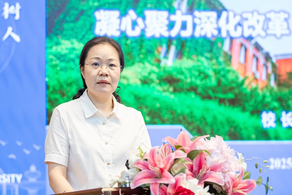 王芳作了《凝心聚力深化改革 锐意进取推动发展》专题报告,她充分肯定了2025年上半年全校上下推动事业高质量发展所付出的努力和所取得的成绩,并围绕2025年下半年重点工作进行了部署。她强调:一要提高思想站位,突出抓好本科教育教学审核评估、科学编制“十五五”事业发展规划、全面启动新校区建设等“三项重中之重”。二要聚焦破难补短,全力落实持续深化教育教学改革、优质服务学生全面发展、加快提升学科建设与科研水平等“三大核心任务”。三要围绕治校育人,强化以高水平党建引领高质量发展、以人才队伍优化夯实发展之基、以服务效能提升保障高质量发展等“三个基本保障”。