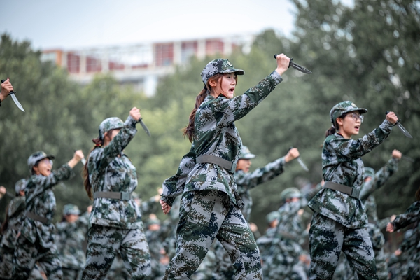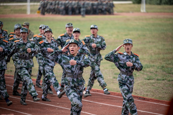 随着阅兵式和分列式表演开始,军训汇报表演正式拉开帷幕。在慷慨激昂的阅兵进行曲中,分列式方阵入场。他们眼神如炬、步履生风,身似青松、势如奔雷,和着时代的鼓点,踏出坚定的步伐,以奋斗与拼搏书写军训的精彩华章,展现三江学子朝气蓬勃、昂扬向上的精神风貌,闪耀着新时代青年不负韶华、强国有我的壮志英姿。