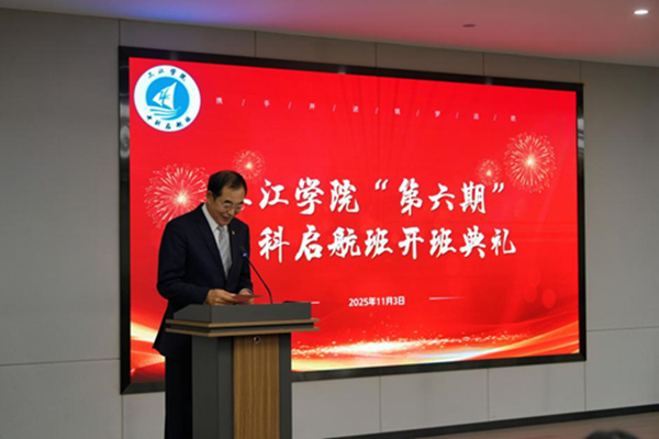 李益平代表学院发言。他说,今年恰逢中科启航班创立十周年,回顾过去10年以来取得的成绩,离不开中科集团的大力支持,他代表学院向中科集团长期以来的鼎力支持致以诚挚感谢,并表示未来学院将与中科集团持续深化产教融合力度,续写校企合作育人的辉煌篇章。