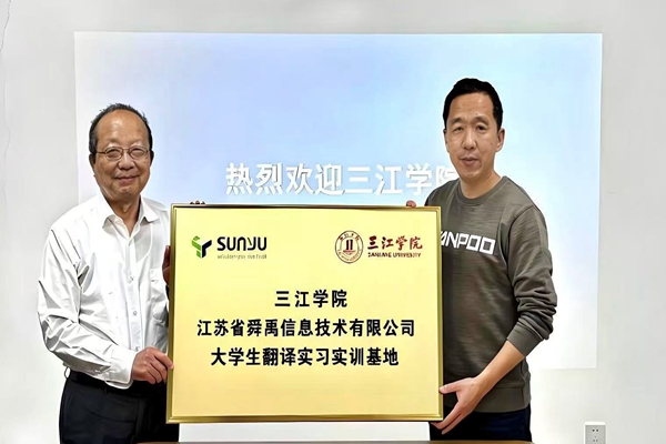 11月14日,best365官方网站与江苏省舜禹信息技术有限公司(以下简称舜禹)举行“大学生翻译实习实训基地”揭牌仪式。