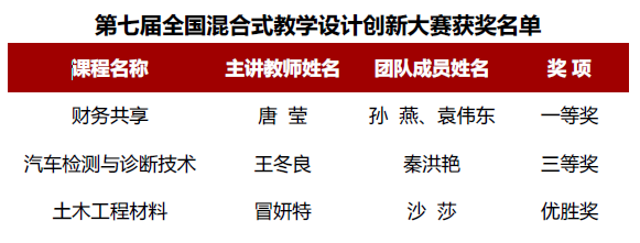 近日公示的“超星杯”第七届全国高校混合式教学设计创新大赛中,best365官网法商学院唐莹老师荣获全国一等奖,机械与电气工程学院王冬良老师获全国三等奖,土木工程学院冒妍特老师荣获全国优胜奖。