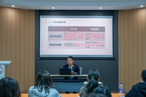 课堂上,王芳等校领导围绕授课主题,从“教育强国的提出、教育强国的内涵及中国特色社会主义教育强国的本职特征、建设中国特色社会主义教育强国的实践路径”三个维度对教育强国进行了系统阐释和深入解读,引导青年学子深刻理解教育强国的重大意义与时代内涵,明确自身在民族复兴伟业中的责任与担当,勉励大家要珍惜时光、勤学修德、明辨笃实,将个人理想追求融入国家发展和民族复兴的伟大事业之中,努力成为可堪大用、能担重任的栋梁之材。