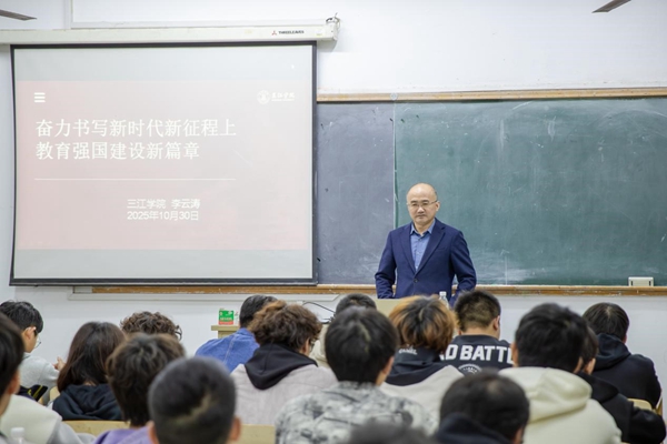 授课过程中,校领导们旁征博引、结合校情,用鲜活案例、详实数据与真挚情感,引发了同学们的强烈共鸣,课堂互动频繁,氛围热烈浓厚。同学们纷纷表示,这堂思政课既有理论高度,又有实践温度,让人倍受启发、倍感振奋。大家一致认为,将牢记嘱托、勇担使命,把个人理想融入教育强国建设的伟大事业中,以实际行动践行“请党放心,强国有我”的青春誓言,为奋力书写新时代教育强国建设新篇章贡献青春力量与智慧才干。