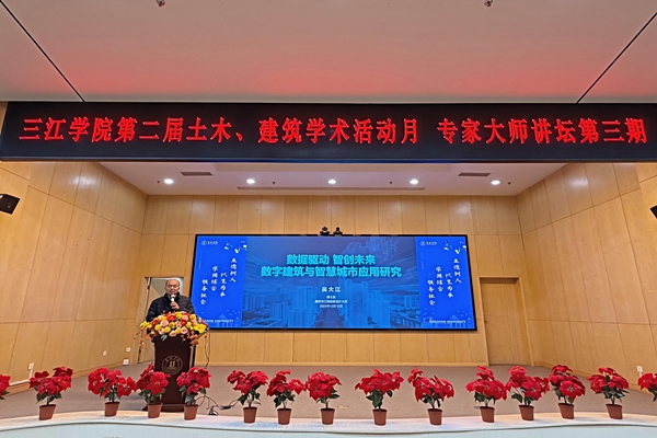 12月10日,best365官方网站第二届土木、建筑学术活动月“专家大师讲坛”第三期在学术报告厅举办。本期讲座邀请了南京市工程勘察设计大师、研究员级高级建筑师吴大江教授,他以《数据驱动 智创未来——数字建筑与智慧》为题为best365官网师生带来了一场紧扣时代脉搏、融合前沿理念与丰富实践的学术报告。