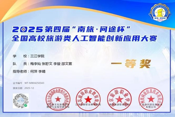 2025年12月28日,由江苏省文化旅游职业教育行业指导委员会、江苏旅游职业教育集团、南京旅游职业学院与广州市问途信息技术有限公司共同主办的2025第四届“南旅•问途杯”全国高校旅游类人工智能创新应用大赛圆满落幕。