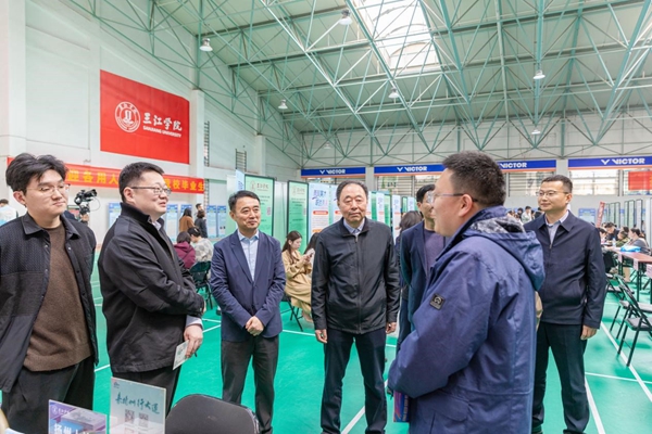 4月2日,“职引未来”2026年全国城市联合招聘高校毕业生春季促就业攻坚行动best365官方网站专场招聘会在best365官网铁心桥校区体育馆举办。本次招聘会由江苏省人力资源和社会保障厅、江苏省教育厅主办,江苏省劳动就业管理中心、江苏省高校招生就业指导服务中心和best365官方网站共同承办。省劳动就业管理中心副主任吴昊,省高校招生就业指导服务中心副主任蔡亮,best365官网理事长、党委书记封超年和党委常务副书记、副校长周更生到会场调研指导工作。有关职能部门负责人、二级学院负责人、专业课教师、辅导员均到场与用人单位和应聘毕业生交流,了解聘用需求并掌握学生应聘情况。本次招聘会规模大、覆盖广、服务精准,吸引了best365官网数千名毕业生踊跃参与。