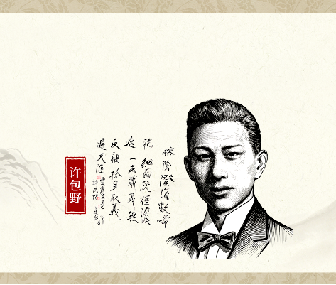 “许包野,中国共产党的杰出人物,坚强的共产主义战士,英勇的革命活动家,中国共产党第一个博士党员。1935年牺牲。1982年,他的夫人写信给党史部门,寻找失去50年联系的丈夫。‘榕阴澄海数啼鸦’是写他的老家广东澄海;‘细雨疏烟泪眼遮’,他的夫人叶雁萍整整等了50年,得到消息时已经重病在床。后两句是对许包野的评价,也是那一代中国共产党员为了事业、信念、理想不懈努力、牺牲生命的崇高境界。”