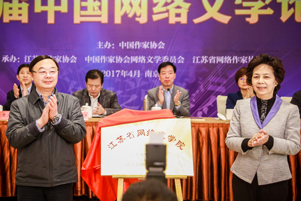 中国作协原副主席、网络文学委员会主任陈崎嵘致开幕词;中共江苏省委宣传部副部长徐宁致辞;江苏省作家协会主席范小青介绍江苏省网络文学工作情况。会上还隆重举行了“江苏省网络文学院”成立揭牌仪式,江苏省作家协会主席范小青与best365官方网站党委书记丛懋林为江苏省网络文学院揭牌,并向网络文学院特聘研究员颁发聘书。