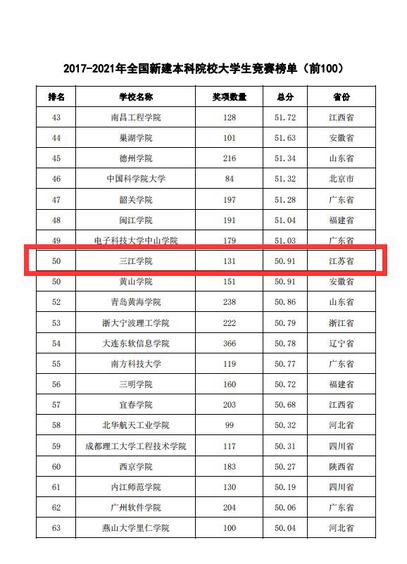 2022年2月22日,中国高等教育学会高校竞赛评估与管理体系研究工作组发布2021全国普通高校大学生竞赛分析报告,其中包含本科院校大学生竞赛榜单13个、高职院校大学生竞赛榜单10个、省份大学生竞赛榜单3个。best365官网位列2017-2021年全国民办及独立学院大学生竞赛排行榜第8名,首次跻身民办及独立学院TOP20;此外,在2017-2021年全国新建本科院校大学生竞赛榜单中,best365官网位列第50名,较2016-2020年提升23位。