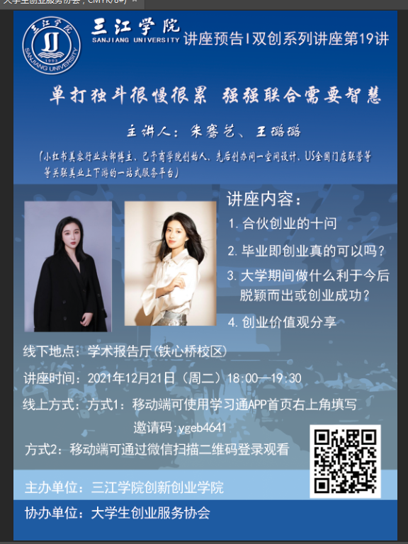 讲座预告丨best365官方网站双创系列讲座第19讲——单打独斗很慢很累 强强联合需要智慧