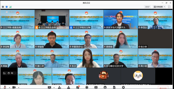 南京决赛区的竞赛得到了大赛组委会和南京决赛区组委会的鼎力支持,大赛组委会常务副主任、教育部高等学校计算机课程教指委副主任、中国人民大学校长助理杜小勇教授,大赛组委会顾问、北京语言大学卢湘鸿教授,大赛组委会秘书长、北京语言大学信息科学学院党总支副书记李吉梅教授,大赛组委会常务委员、专家委副主任、专家委数媒大类组长、教育部高等学校动漫与数字艺术教指委秘书长、全国高等院校计算机基础教育研究会理事长、中国传媒大学动漫与数字艺术学院院长黄心渊教授,大赛组委会常务委员、纪监委常务副主任、华东师范大学郑骏教授,大赛组委会常务委员、专家委人工智能应用大类核心组组长、教育部高等学校计算机课程教指委秘书长、西安交通大学计算机学院副院长桂小林教授,大赛组委会常务委员、教育部高等学校计算机课程教指委副主任、空军军医大学卢虹冰教授,大赛组委会专家委数媒类动漫与短片核心组组长、北京服装学院李四达教授,南京决赛区组委会副主任、江苏省大学生计算机设计大赛执委会主任、南京师范大学计算机与电子信息学院院长、人工智能学院院长吉根林教授,南京决赛区组委会副主任、江苏省计算机学会工委主任、南京大学人工智能学院副院长申富饶教授,南京决赛区组委会副主任、中国大学生计算机设计大赛组委会专家委人工智能应用大类核心组副组长、东南大学翟玉庆教授,南京决赛区组委会秘书长、江苏省计算机学会秘书长、南京大学金莹教授,南京决赛区组委会副秘书长、中国大学生计算机设计大赛组委会专家委人工智能应用大类核心组秘书长李骏扬老师,南京决赛区组委会副秘书长、江苏省计算机学会副秘书长、江苏省大学生计算机设计大赛组委会秘书长张洁老师等相关领导与专家们出席了线上开幕式和线上总结会暨颁奖会。