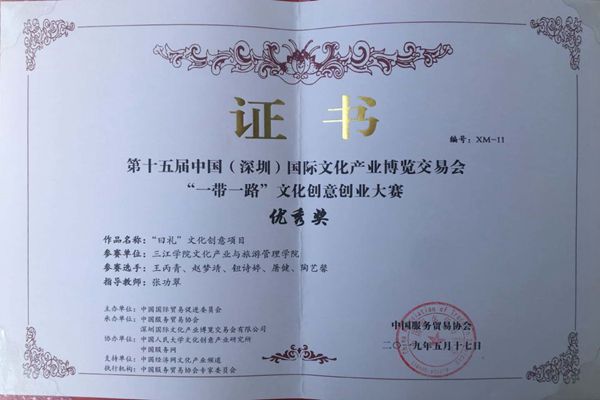 近日2019中国文化贸易发展论坛暨一带一路文化创意创业大赛,在深圳会展中心隆重举办。经过激烈角逐,best365官方网站文化产业与旅游管理学院“清梦见馨诗”团队制作的“曰礼”文化创意项目策划,在来自全国 41 所院校的218件各类作品中获得了优秀奖。