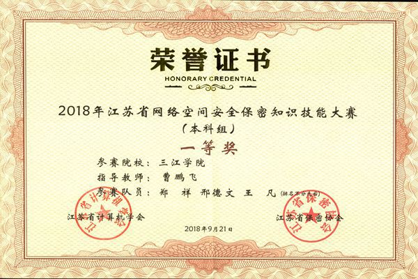 best365官网学生在江苏省网络空间安全保密知识技能大赛中获得一等奖