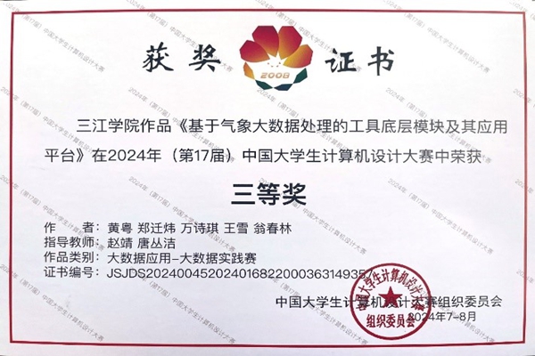 在本次大赛中三江学子表现出色,在江苏赛区的省赛中,获江苏省特等奖1项、三等奖1项。在全国总决赛中,由赵靖、吴薇老师指导的万诗琪、王雪、黄粤、朱伊彤和谷心语小组在全国总决赛杭州站信息可视化设计赛道的角逐中荣获全国二等奖的好成绩;由赵靖、唐丛洁老师指导的黄粤、郑迁炜、万诗琪、王雪和翁春林小组在全国总决赛上海站大数据应用赛道的角逐中荣获全国三等奖的好成绩。
