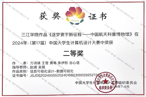 此次参赛同学通过课堂和课后兴趣小组的深入研究和学习,创作了该项目。在作品的创作与打磨过程中,来自计算机科学与工程学院和艺术学院的同学们在指导老师们的带领下尝试了跨学科、多专业的碰撞与融合,完成了理性严谨与创意美学的实践与协调。经过半年的校级遴选、省初赛、省决赛、国赛层层选拔,参赛同学分工明确,在多次讨论中不断试错,最终取得优异成绩,展现出三江学子不畏艰苦、勤奋好学的卓越风采。